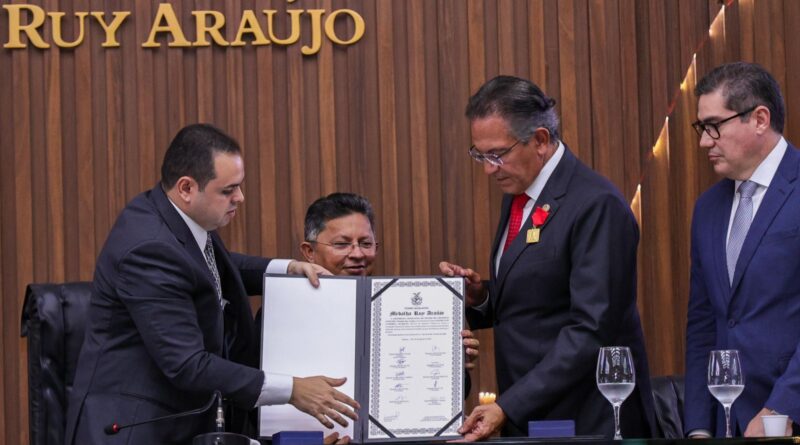 Presidente Roberto Cidade destaca contribuições do ministro Mauro Campbell e do juiz Lizandro Garcia para o Judiciário brasileiro, durante outorga da Medalha Ruy Araújo