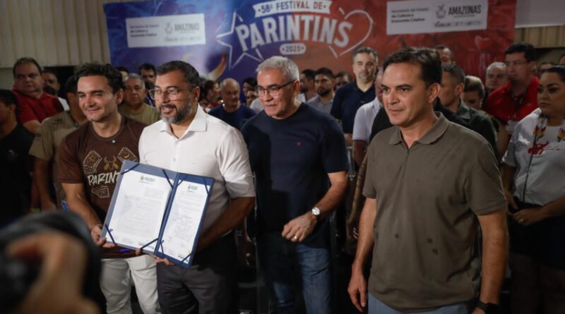 O governador do Amazonas, Wilson Lima, acompanhou a abertura da primeira noite do 58º Festival de Parintins, nesta sexta-feira (27/06) e durante coletiva de imprensa assinou o contrato para a elaboração do projeto executivo de arquitetura do novo Bumbódromo. A assinatura reforça o compromisso do Governo do Estado com a modernização da arena que abriga o maior festival folclórico a céu aberto do mundo.