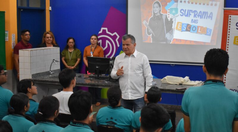 O superintendente da Suframa, Bosco Saraiva, fez a abertura da atividade compartilhando sua trajetória pessoal e a importância histórica do modelo. “Esse programa que a Suframa realiza nas escolas tem o objetivo de despertar em vocês o interesse em pesquisar e compreender a importância da Zona Franca de Manaus. Não é apenas acreditar no que estamos dizendo, mas entender que são mais de 131 mil trabalhadores hoje empregados no Polo Industrial, sustentando a economia do nosso Estado e criando oportunidades. As fábricas, nos próximos anos, vão demandar milhares de engenheiros e técnicos, e são vocês que poderão ocupar essas vagas. É estudando e se preparando que poderão conquistar independência e prosperidade”, declarou.